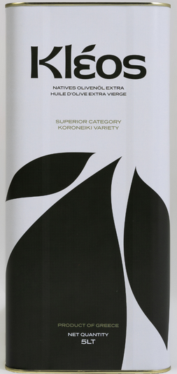Kleos extra Natives Olivenöl aus 100 % Koroneiki-Oliven. Kleos extra Natives Olivenöl wird durch Kaltpressung hergestellt und enthält ein niedrige Säuregehalt.