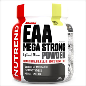 Nutrend Eaa Mega Strong Powder enthält eine Mischung aus 9 essentiellen Aminosäuren (EAA) in Instantform, noch dazu vitamin B6, B12 ,D und Zink.